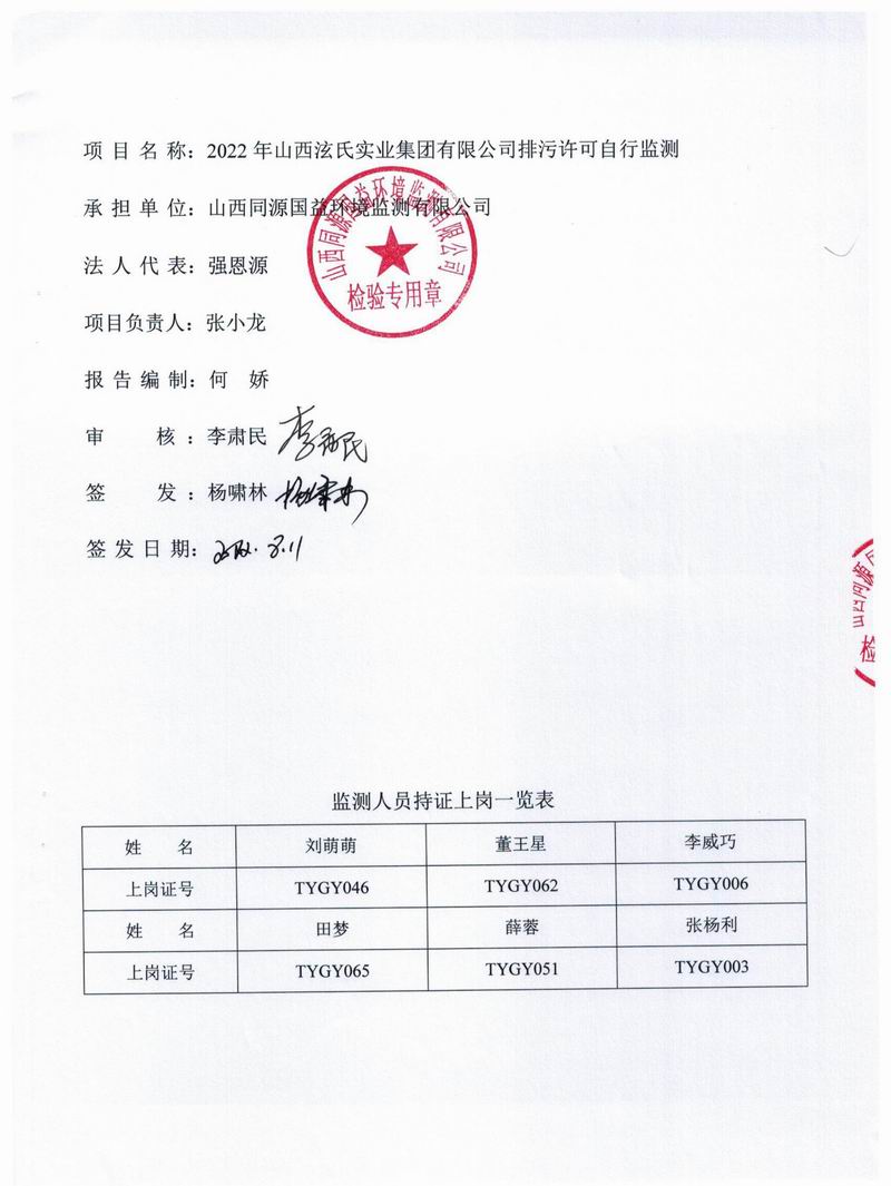 山西泫氏2022年3季度監測報告